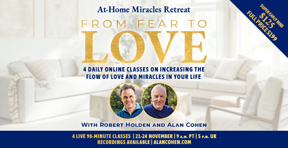 Register now for the SUPER Early Bird rate & Save 30% NOW. Join Robert Holden and Alan Cohen for a Home Retreat style online workshop featuring four daily classes held over one weekend from Friday through Monday. In From Fear to Love, Alan and Robert present four 90-minute classes on how to increase the flow of love […]